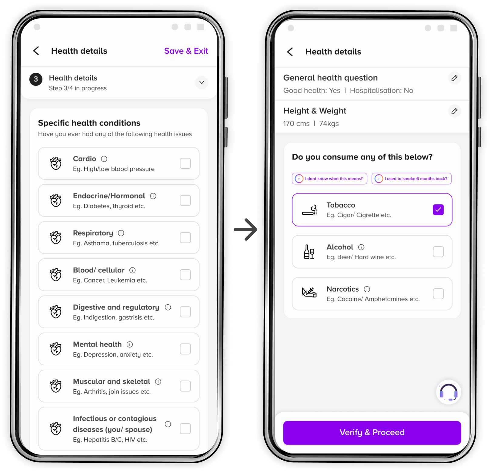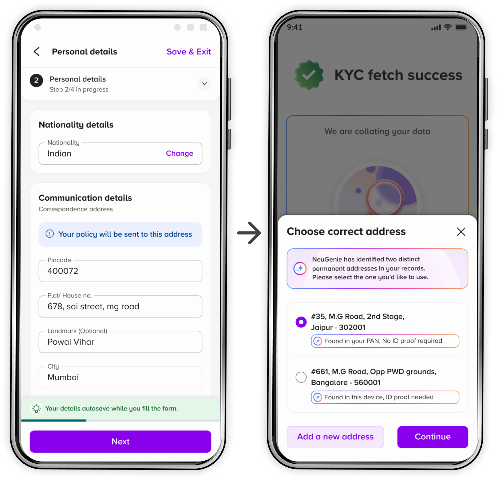 Insurance post-payment documentation (KYC → personal → nominee → health → upload) suffered from: