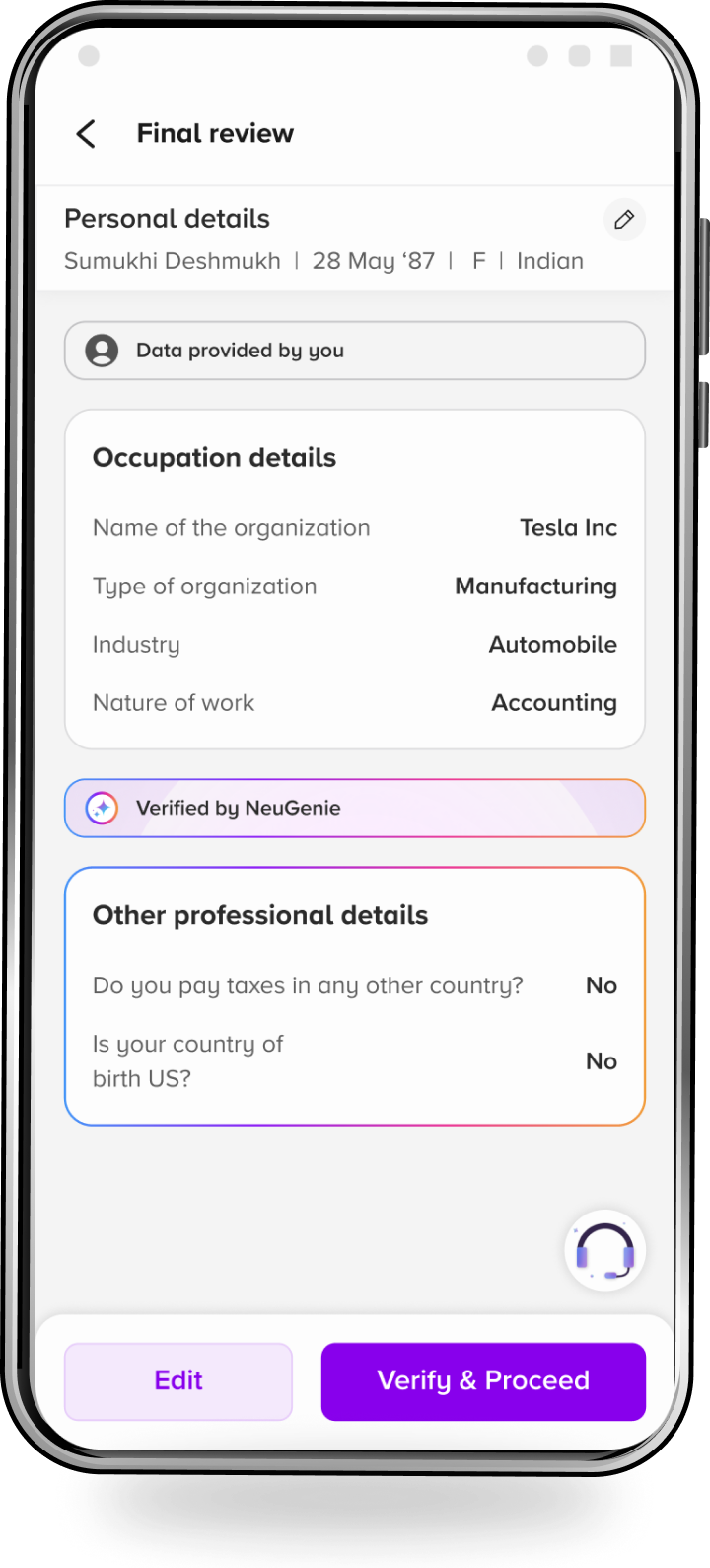 auto-filled personal details